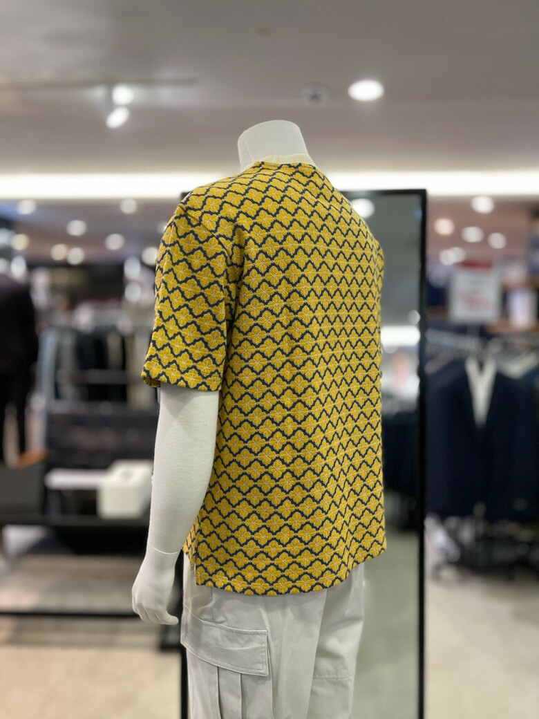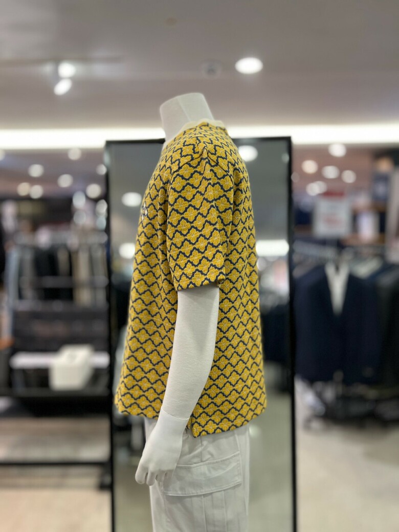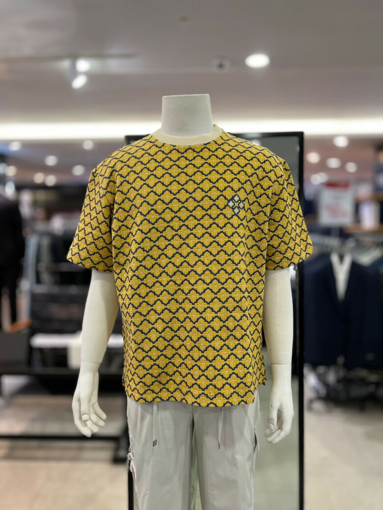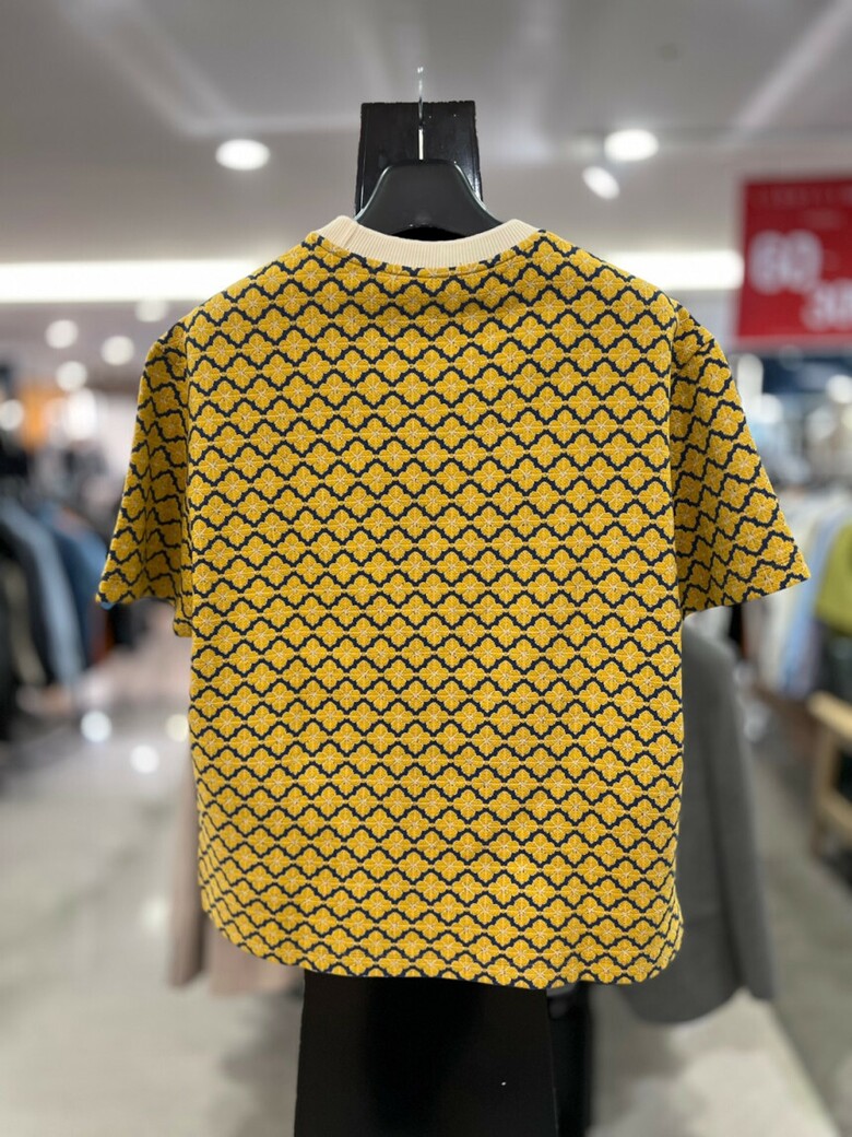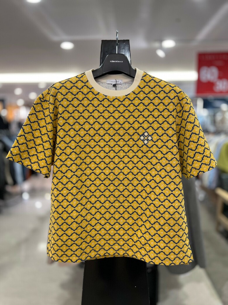 리버클래시 옐로우 오버핏 플라워 자카드 반팔 티셔츠 LKS41349