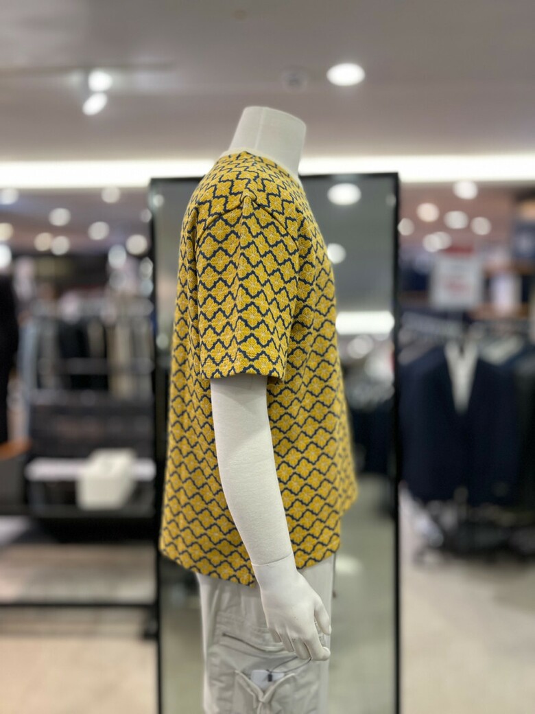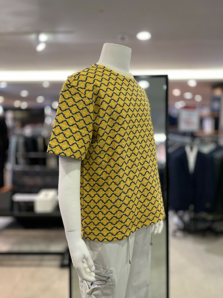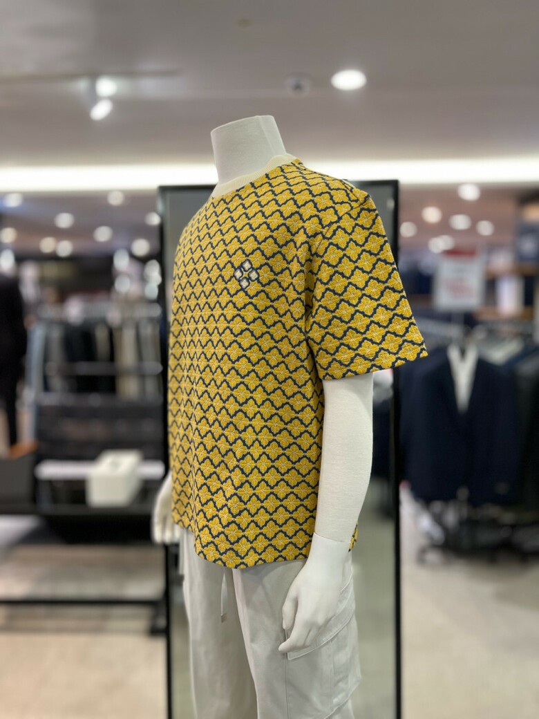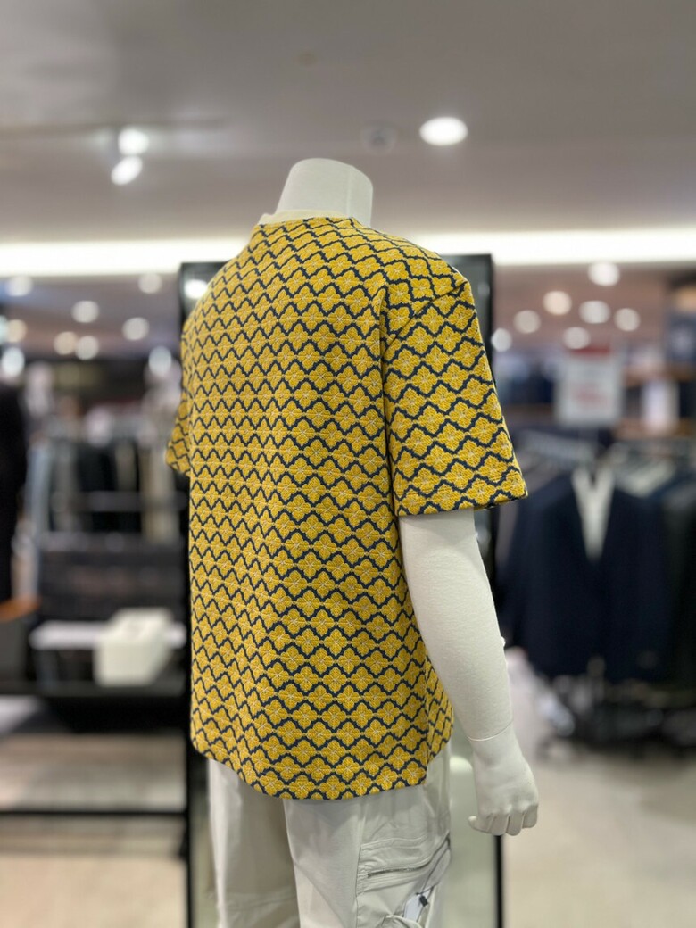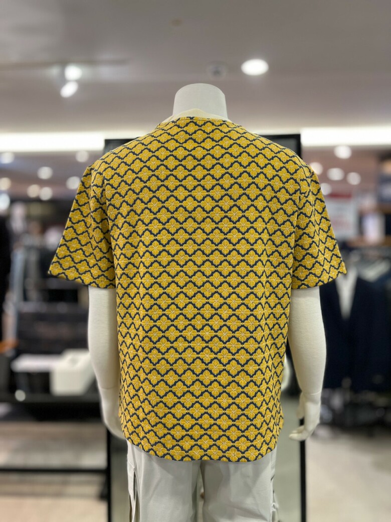 리버클래시 옐로우 오버핏 플라워 자카드 반팔 티셔츠 LKS41349