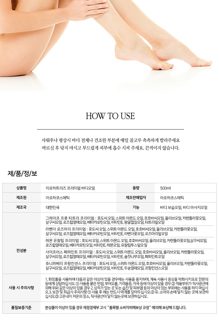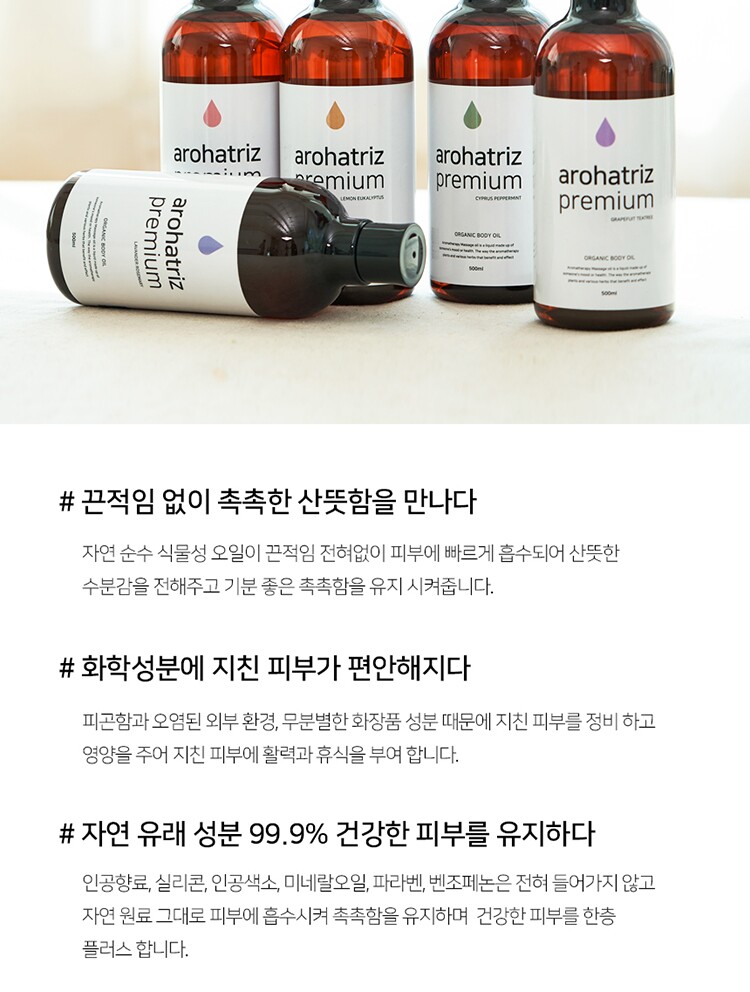 끈적임 없이 영양과 촉촉함만이 가득 프리미엄 바디오일 500ml 5종 택1