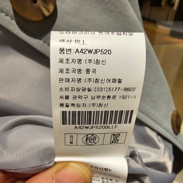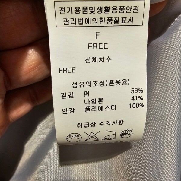 제품소재 : 겉감 면 59% 나일론 41% / 안감 폴리에스터 100%