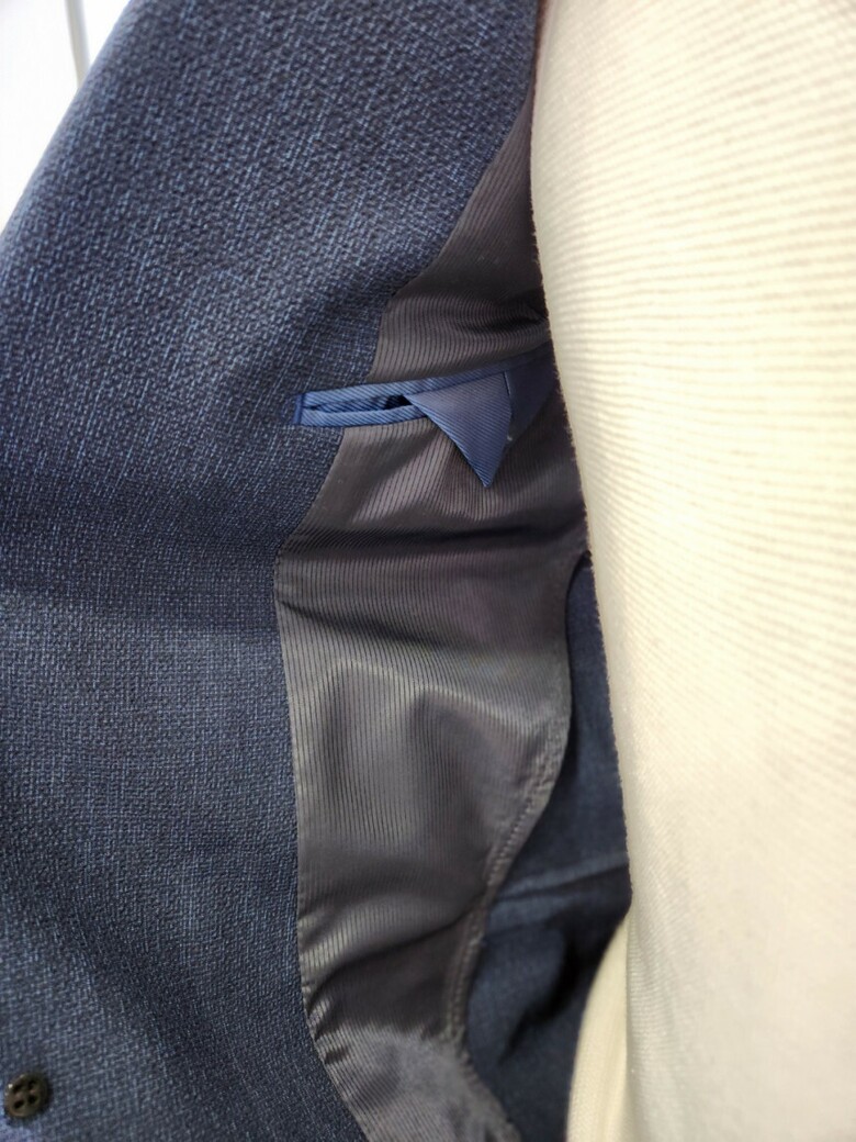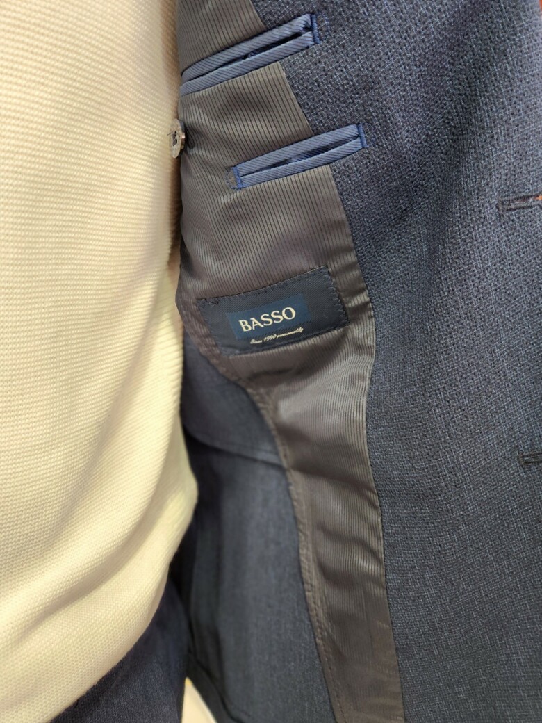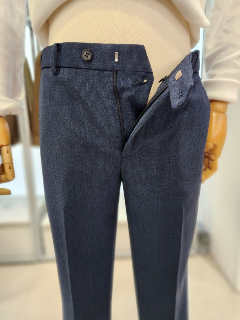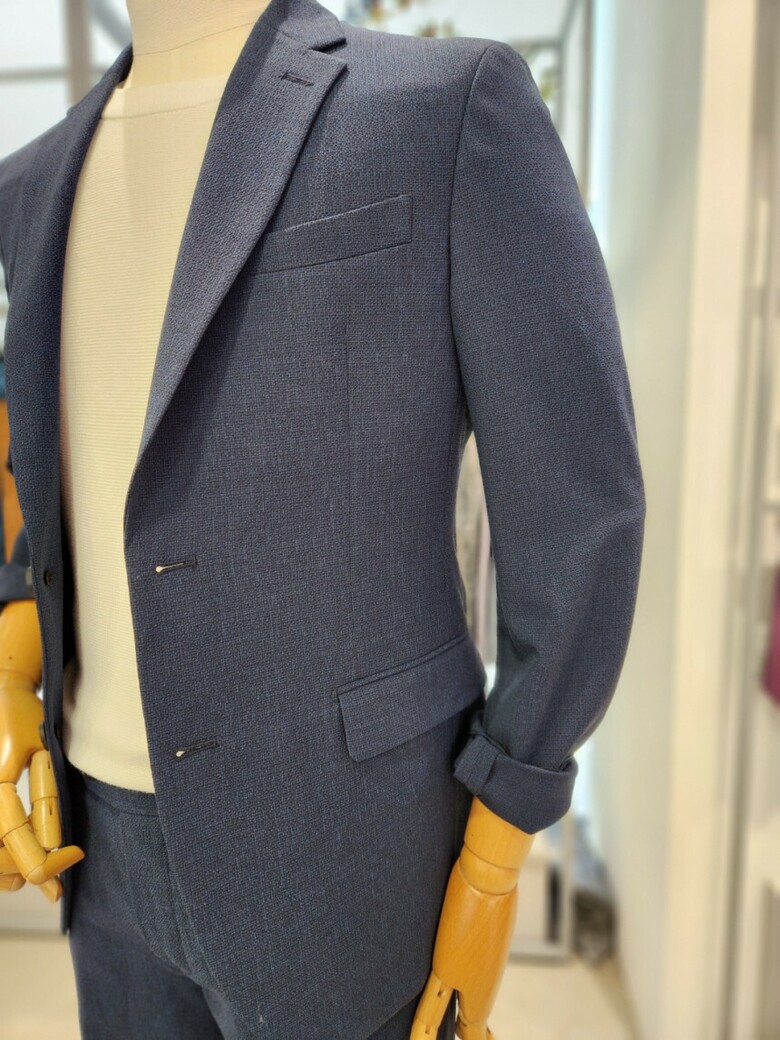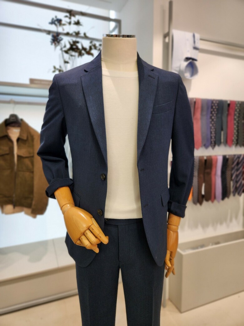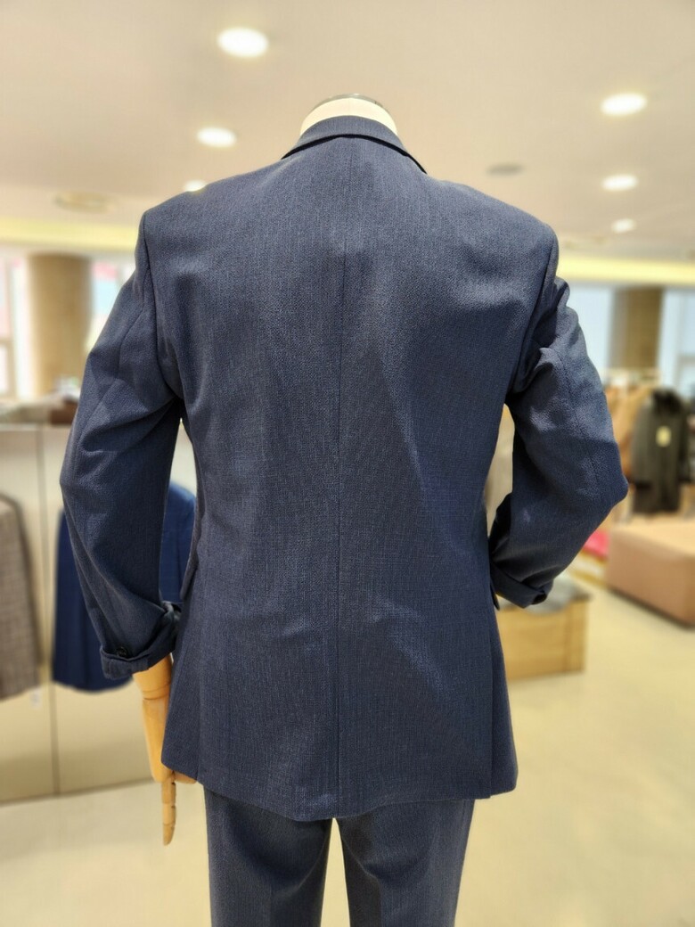 원단이 부드러우며 네이비 컬러의 셋업이라 슈트 대용 착장이 가능합니다.