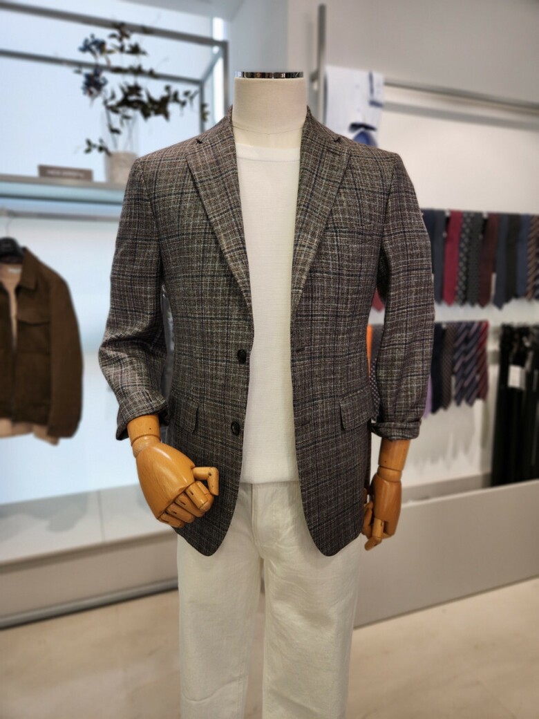 브라운 체크 콤비 자켓