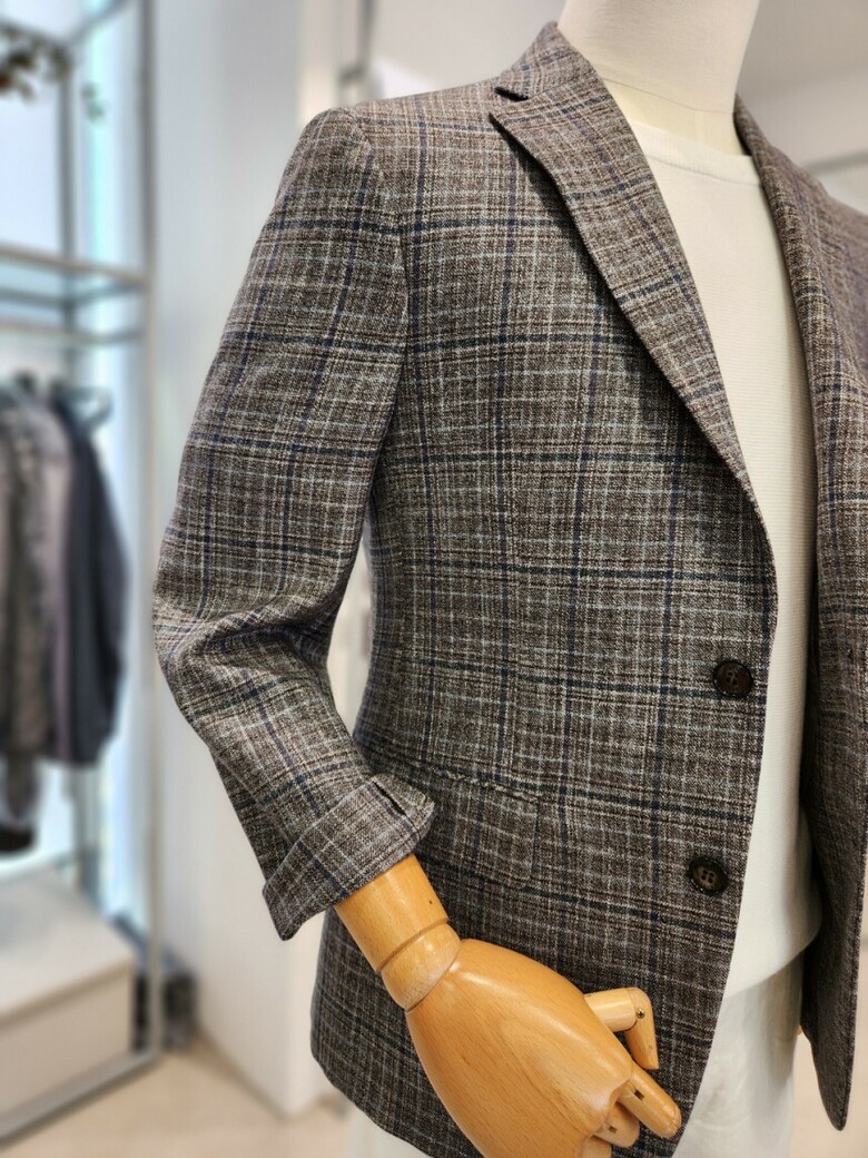 바쏘[BASSO] 브라운 체크 콤비 자켓 JS44A