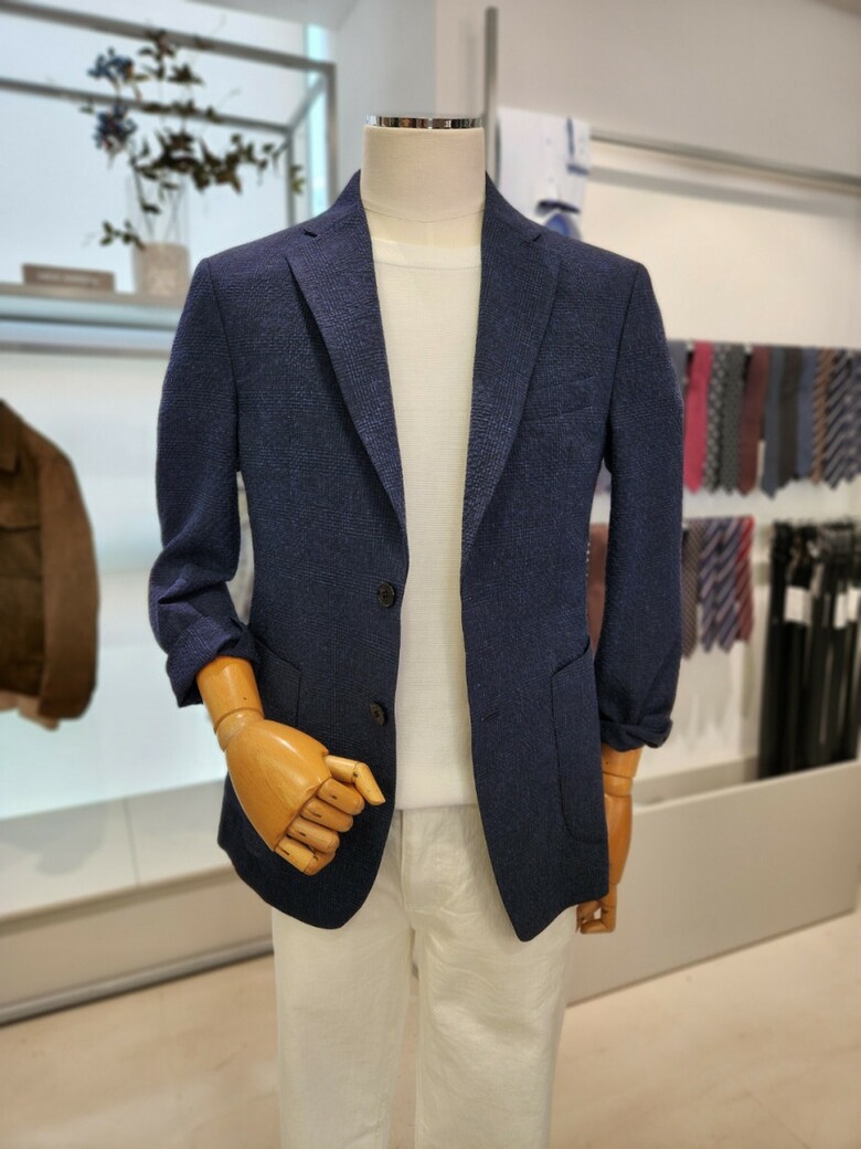 바쏘[BASSO] 시어서커 블루 체크 콤비 자켓 JS63A