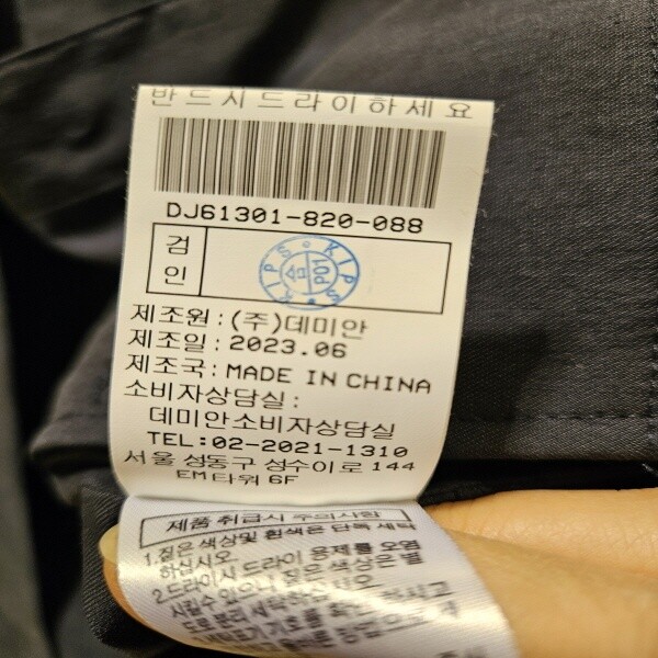 세탁방법 및 취급시 주의사항 : 단독드라이