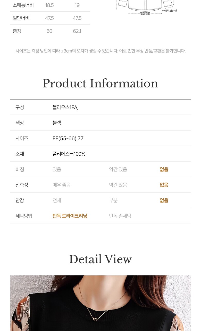 • 처음 배송된 상품상태와 다를 경우(세탁/착용 후 외출하신 경우) 반품이 불가합니다.