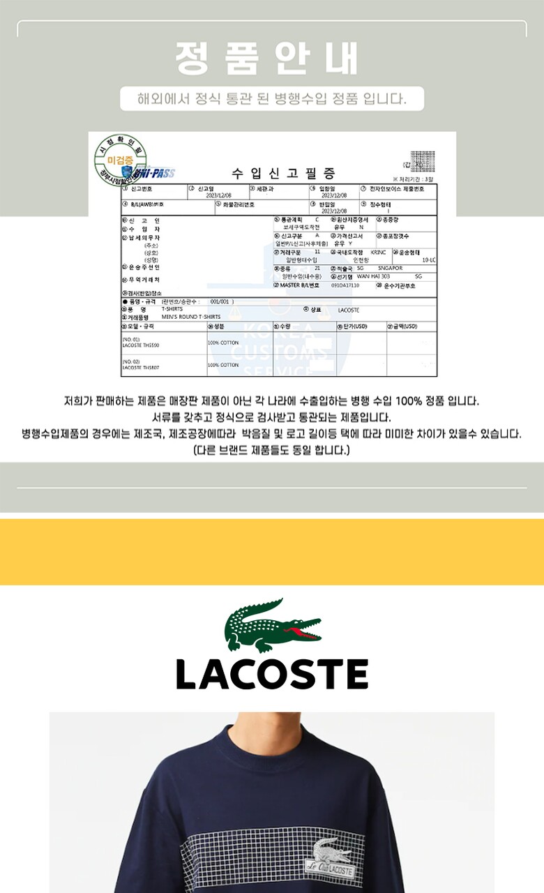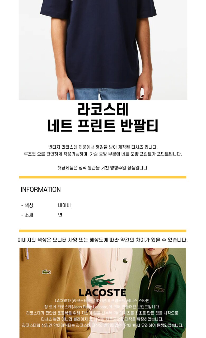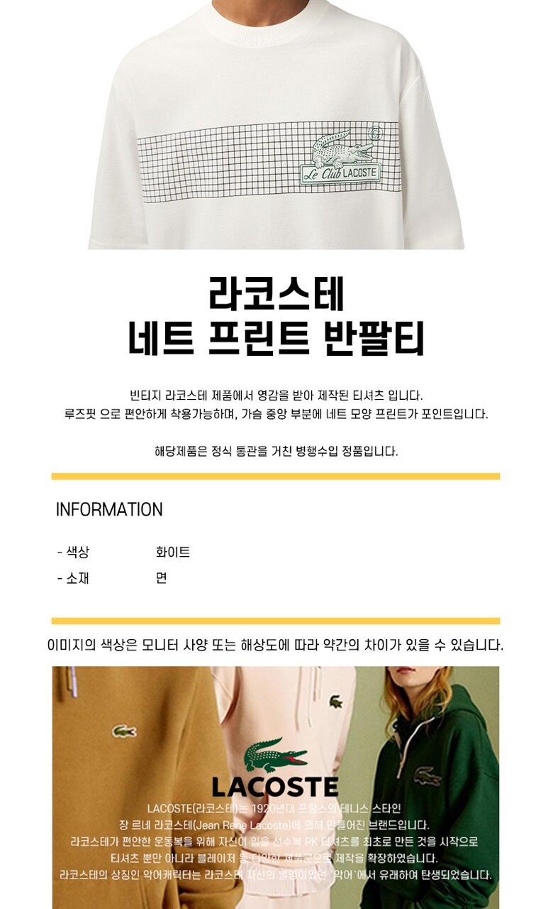 LACOSTE 라코스테 네트 프린트 반팔티 TH5590 루즈핏 4종 택1