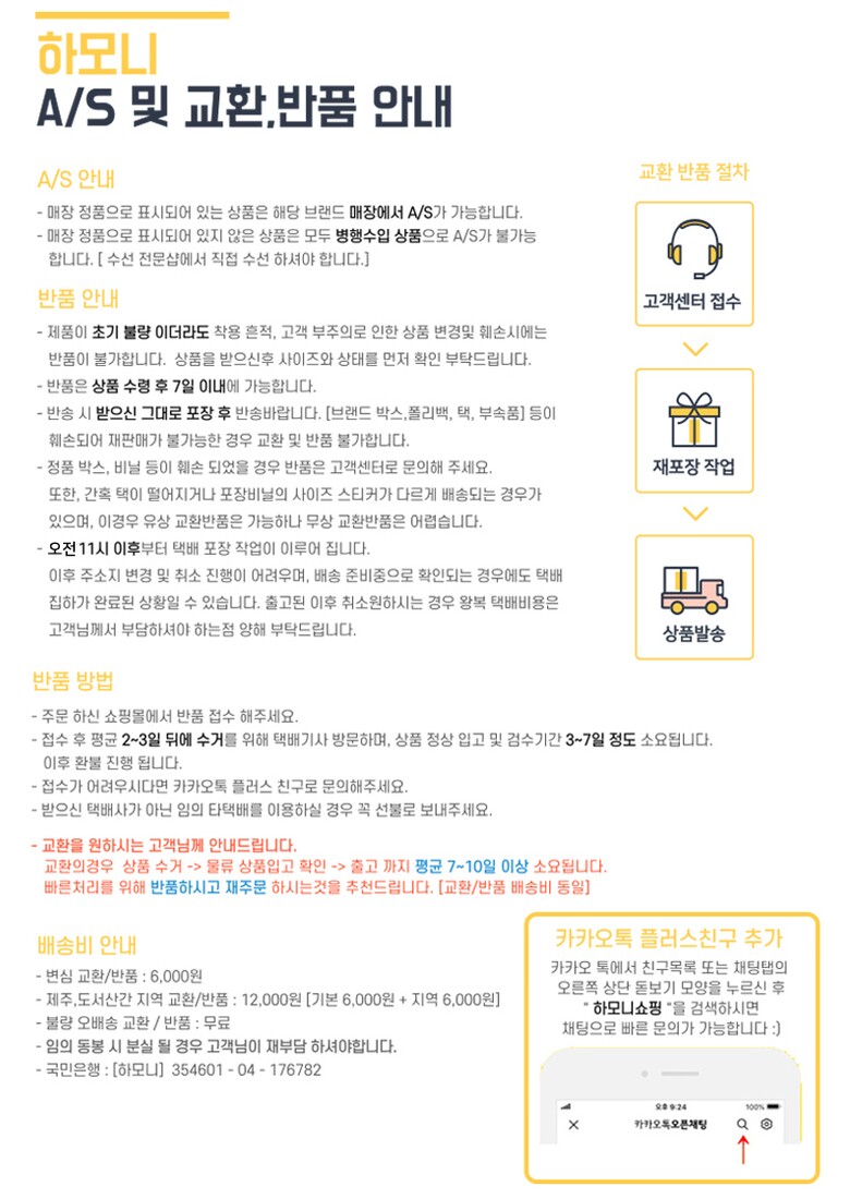 | 9. A/S 책임자와 전화번호 | 안내 / 010-8074-6996 카카오톡 / 하모니쇼핑 |
