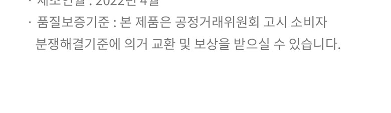 | 8. 품질보증기준 | 관련법 및 소비자분쟁해결기준에 따름 |