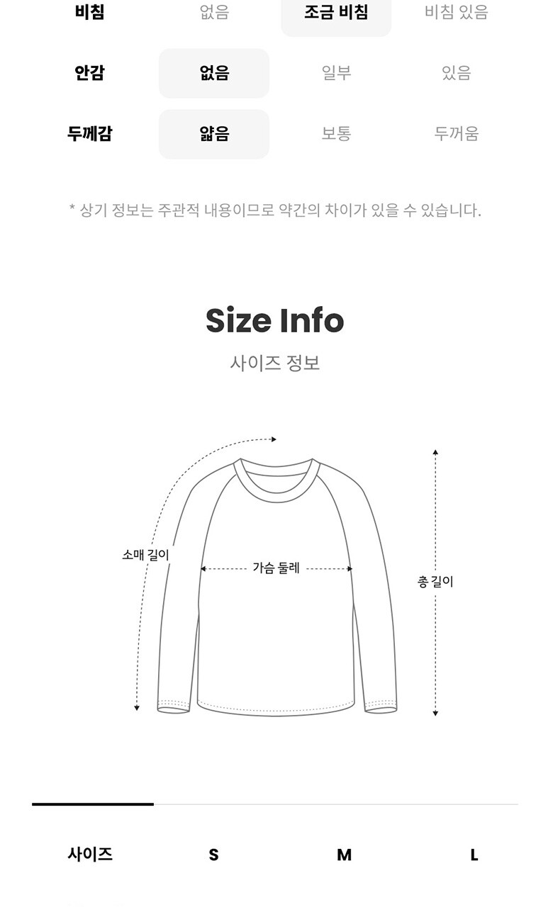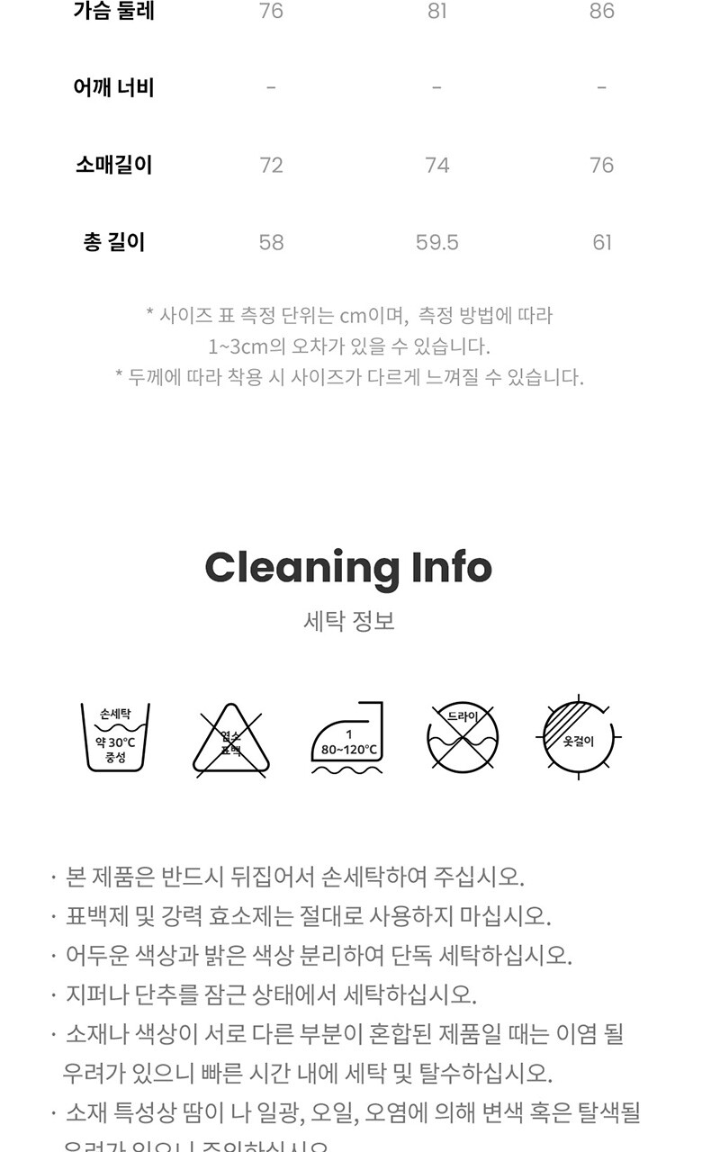 3. 치수 | S(55),M(66),L(77),XL(88) |