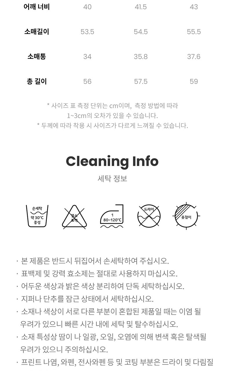 • 처음 배송된 상품상태와 다를 경우(세탁/착용 후 외출하신 경우) 반품이 불가합니다.