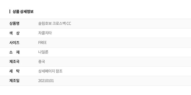 | 1. 종류 | 가방 |