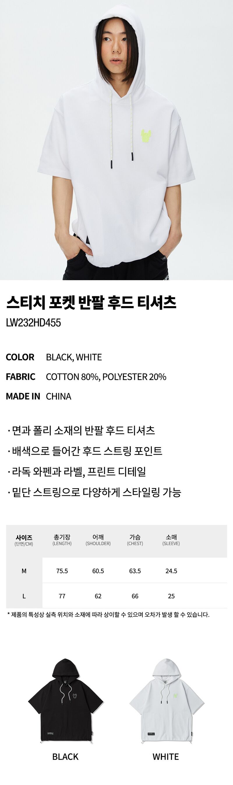 [라이프워크] 스티치 포켓 반팔 후드 티셔츠 (LW232HD455-00)