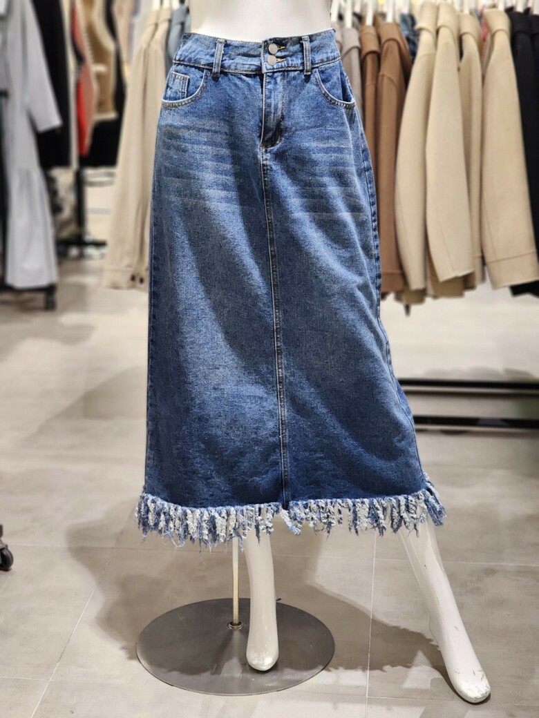 [ab.f.z] 밑단 수술 데님 롱스커트 MAY5HS33