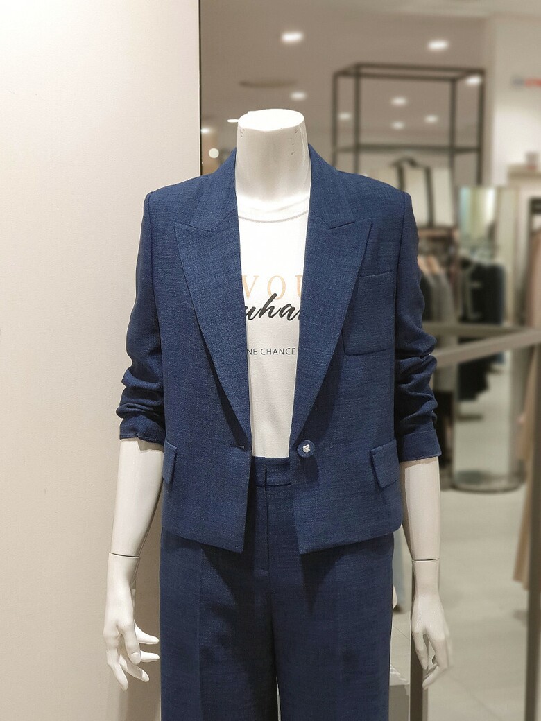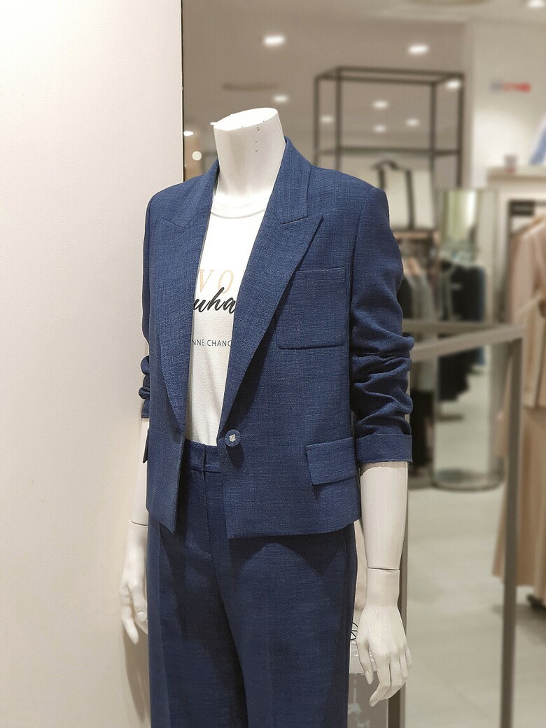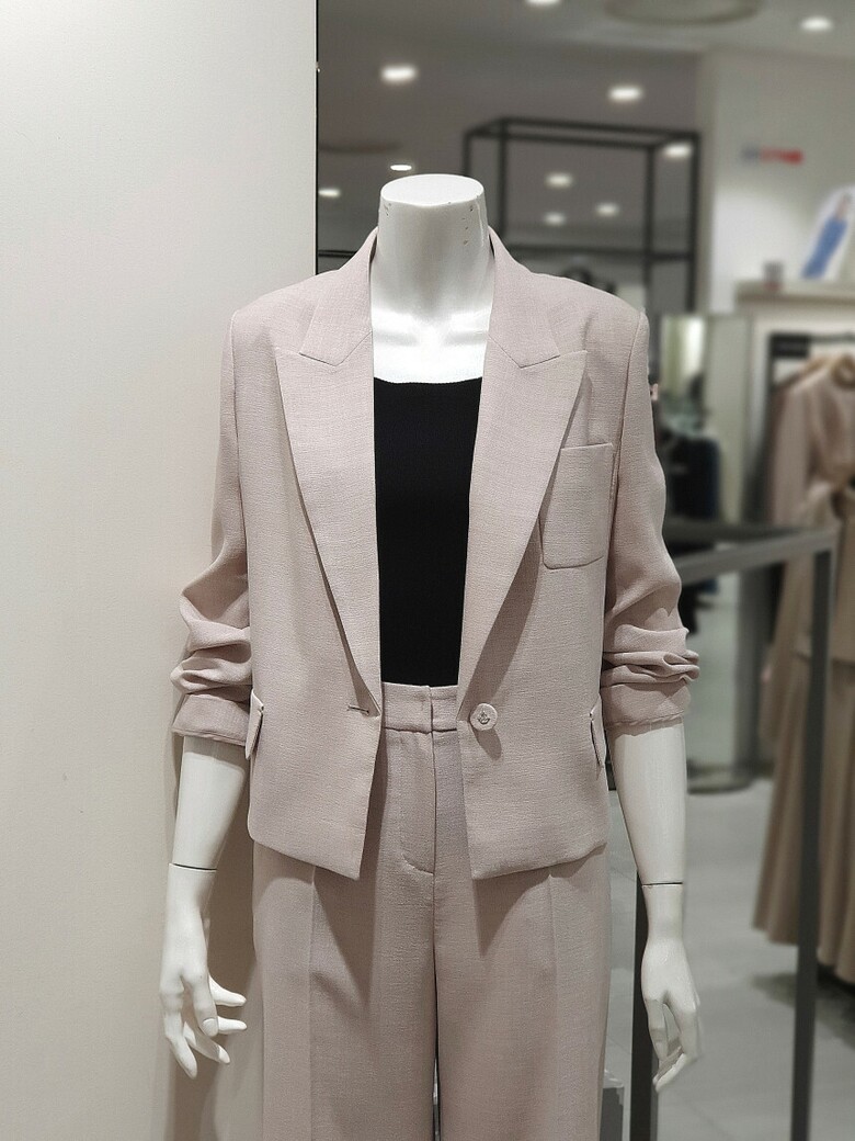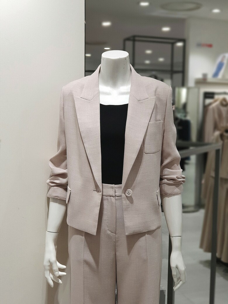 원 버튼 클로징 가능한 크롭 재킷입니다.