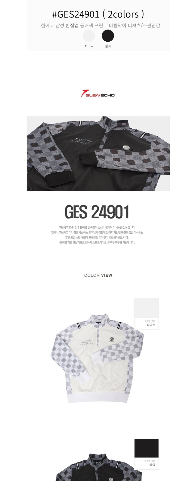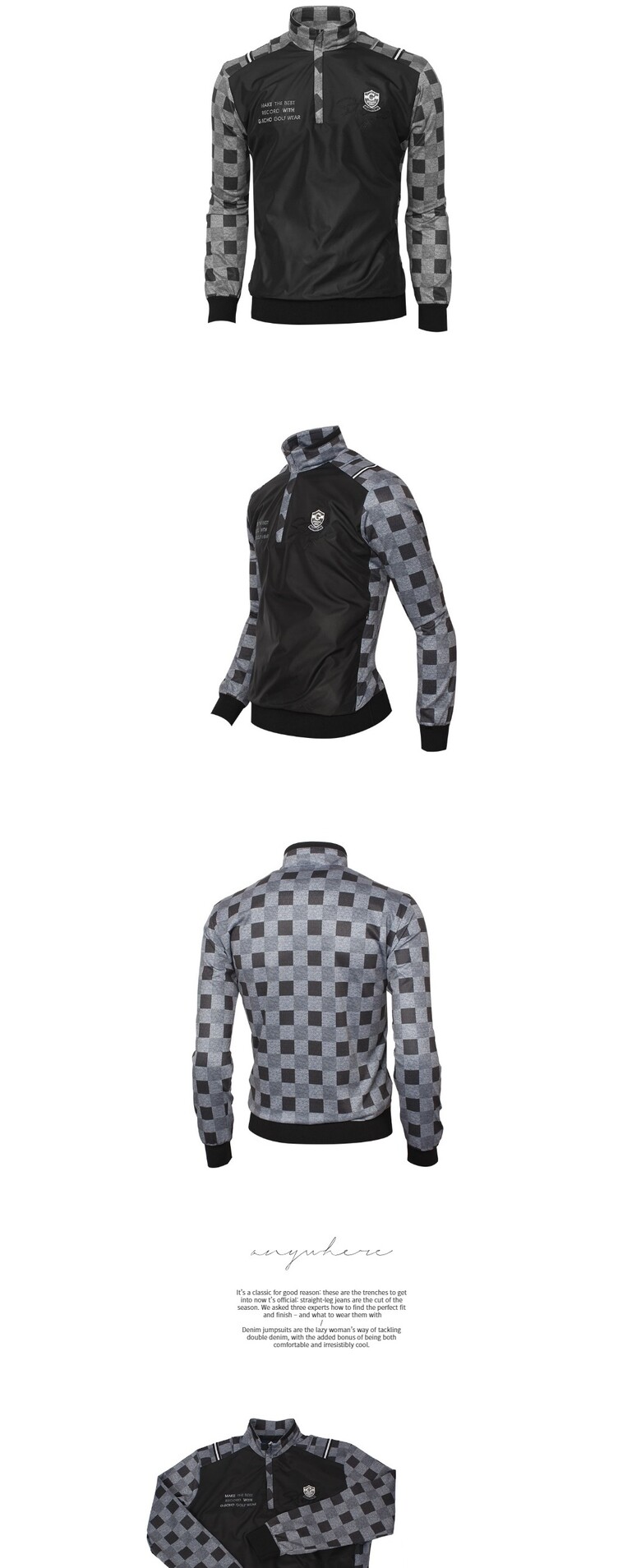남성 봄 골프웨어 골프 반집업 배색 바람막이 긴팔 티셔츠 블랙