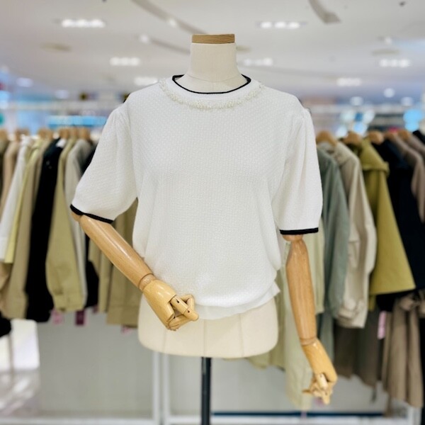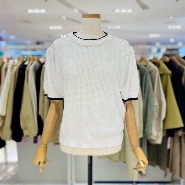 A24SW4208_진주목걸이 반팔 니트