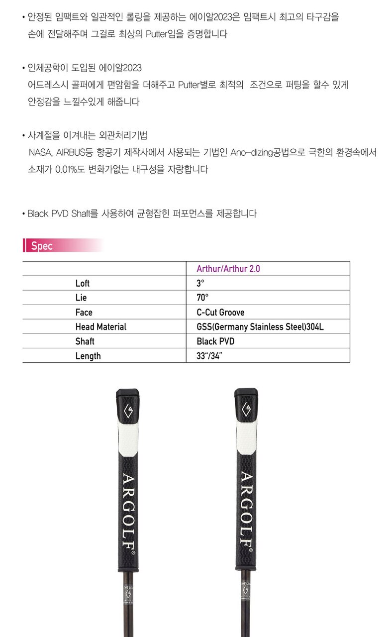 | 1. 품명 및 모델명 | 아르골프 아더 퍼터 |