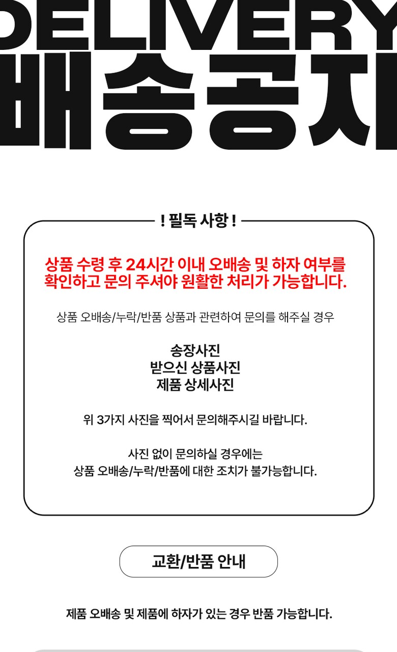 상품불량에 의한 반품, A/S, 품질보증 및 피해보상 등에 관한 사항은 소비자 분쟁해결기준(공정거래위원회 고시) 구매자가 미성년자인 경우에는 상품 구입시 법정대리인이 동의하지 아니하면 미성년자 본인 또는 법정대리인이 구매취소 할 수 있습니다. |