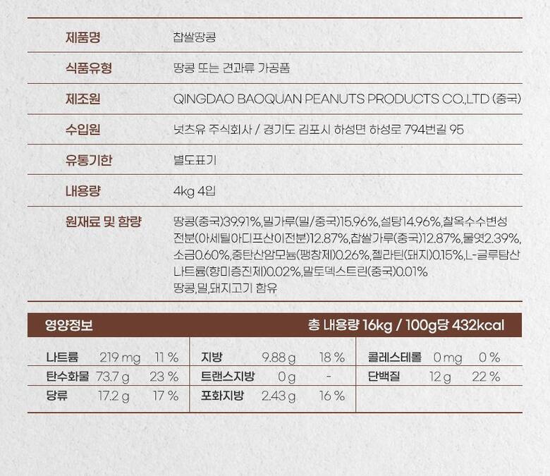 맛사랑 찹쌀땅콩 4kg 4입 [박스]