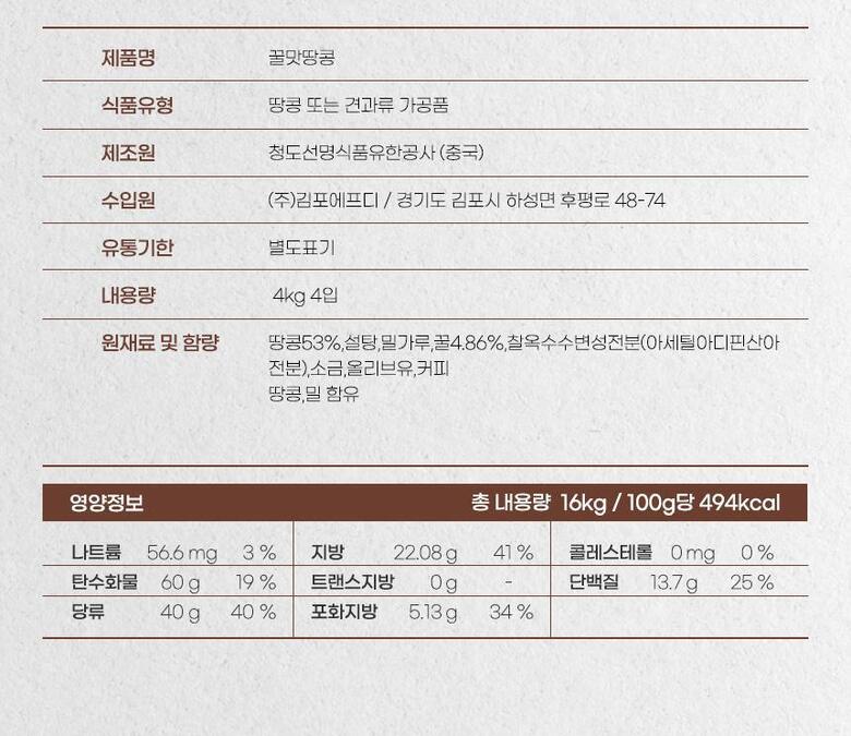 맛사랑 꿀맛땅콩 4kg 4입 [박스]