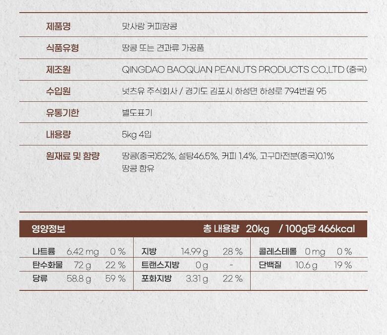 맛사랑 커피땅콩 5kg 4입 [박스]