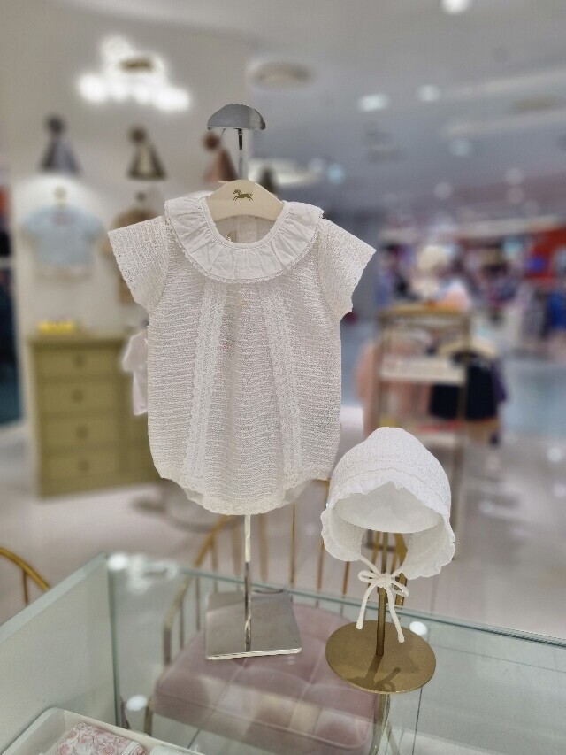 시원한 니트 소재의 여아 바디수트입니다 보넷과 셋트입니다