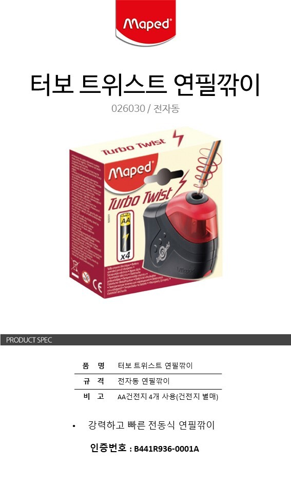 [프랑스 마패드] 터보 트위스트 연필깎이026030전자동
