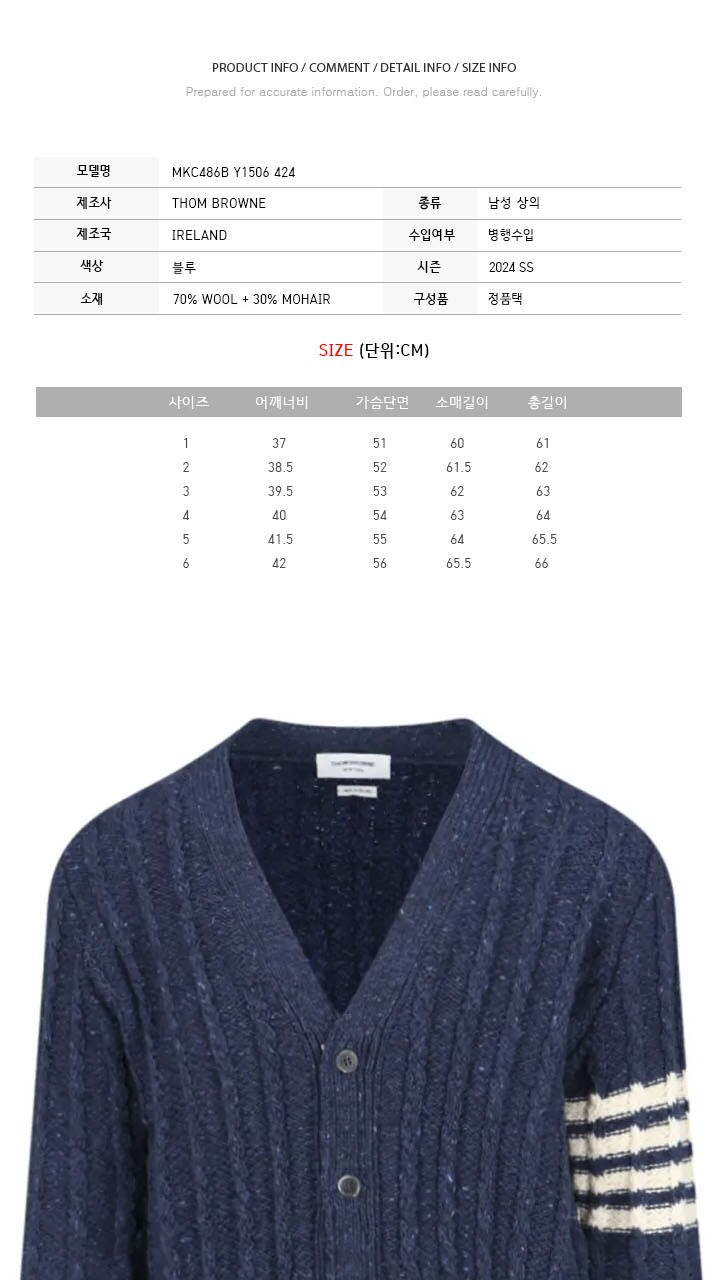톰브라운 24SS 트위스트 케이블 클래식 브이넥 가디건 블루 MKC486B Y1506 424