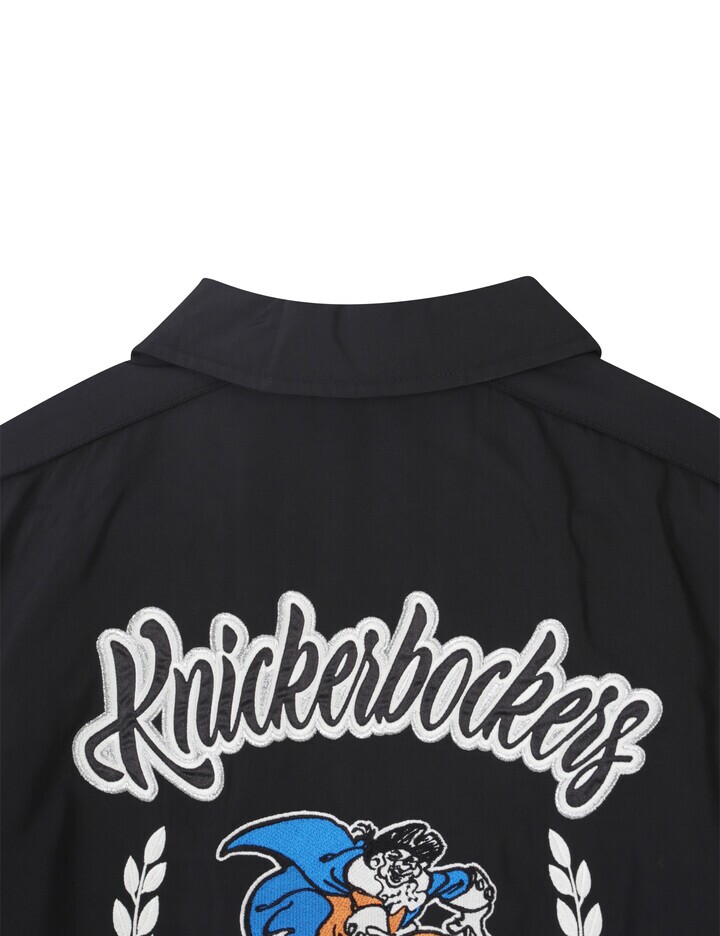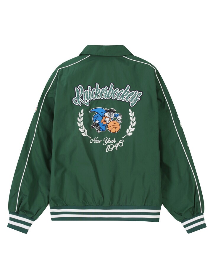 하드우드 그래픽 뉴욕 니커보커스 그래픽의 카라형의 바시티 점퍼