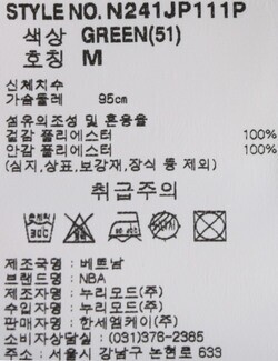| 6. 세탁방법 및 취급시 주의사항 | 상품상세참조 |