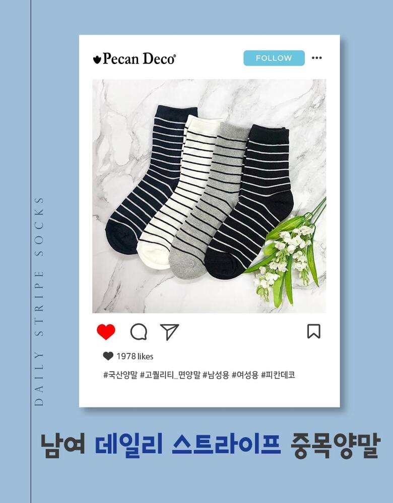 국산28 남여 데일리 스트라이프 중목양말 1켤레