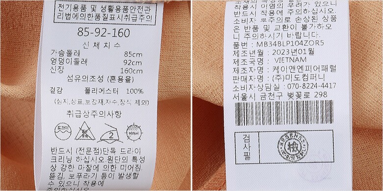 | 6. 세탁방법 및 취급시 주의사항 | 상세페이지 참조 |
