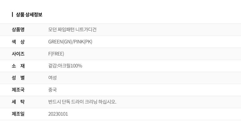 | 6. 세탁방법 및 취급시 주의사항 | 상세페이지 참조 |