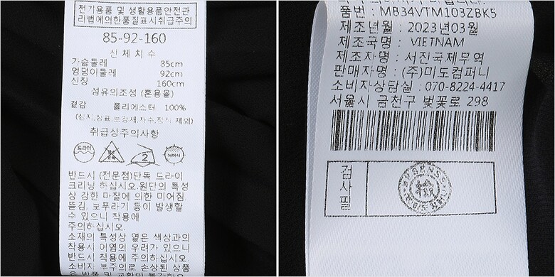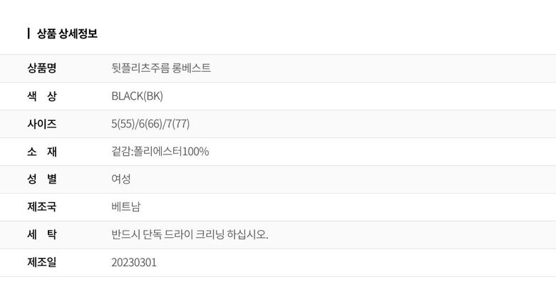 | 6. 세탁방법 및 취급시 주의사항 | 상세페이지 참조 |