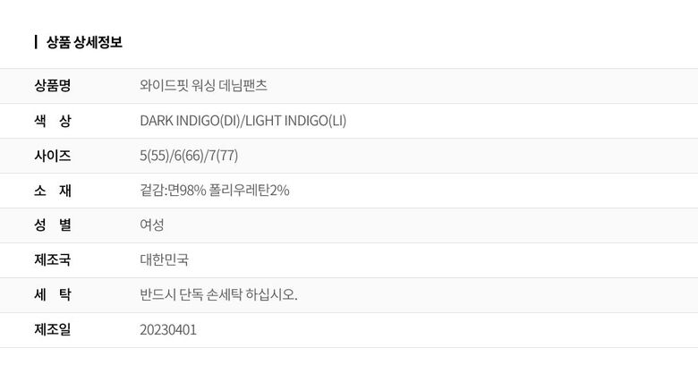 | 2. 색상 | 색상:DARK INDIGO(DI)/LIGHT INDIGO(LI) |