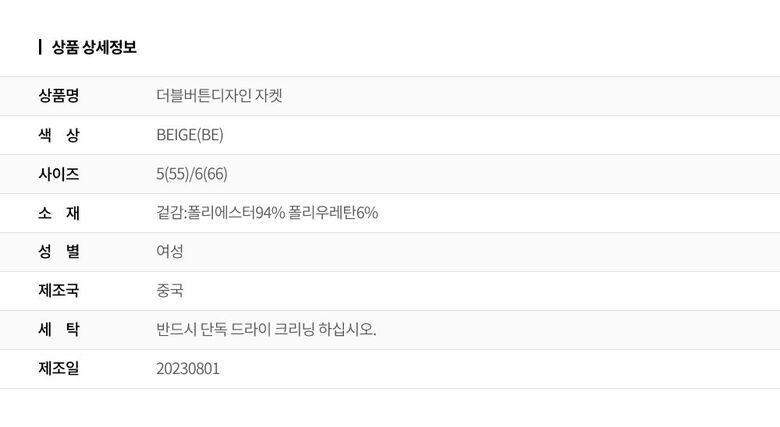 | 6. 세탁방법 및 취급시 주의사항 | 상세페이지 참조 |