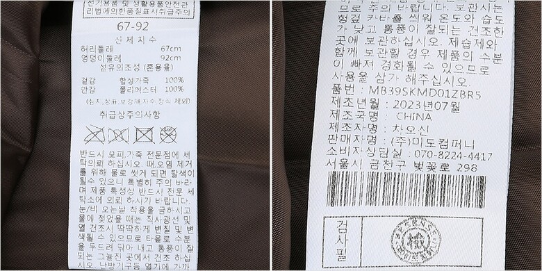 | 6. 세탁방법 및 취급시 주의사항 | 상세페이지 참조 |