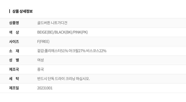 | 2. 색상 | 색상:BEIGE(BE)/PINK(PK) |