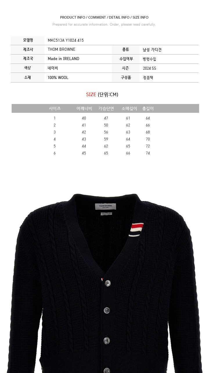 톰브라운 24SS 케이블 스티치 브이넥 울 가디건 네이비 MKC513A Y1024 415