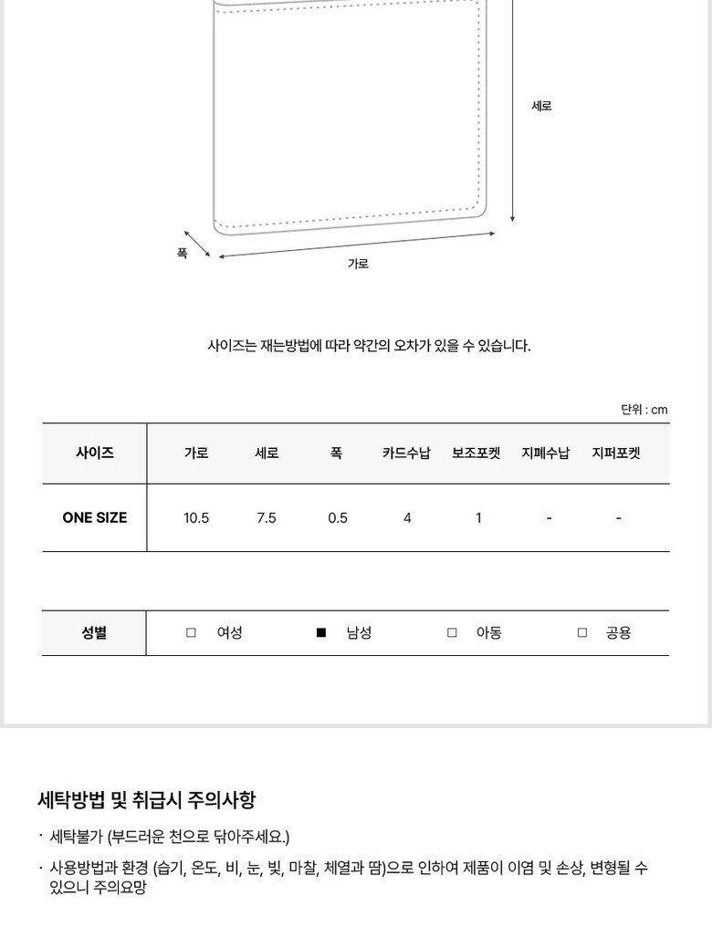 3. 치수 | 가로 10.5cm X 세로 7.5cm X 폭 0.5cm |