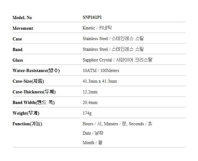 | 7. 주요 사양 | 스테인리스스틸 시계 키네틱 |