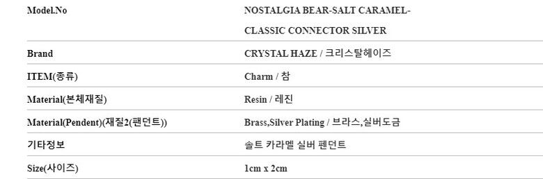 크리스탈헤이즈 NOSTALGIA BEAR-SALT CARAMEL-CLASSIC CONNECTOR SILVER 펜던트 클래식 솔트 카라멜 실버