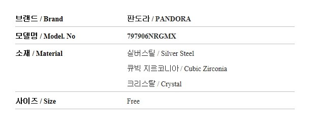 | 1. 소재 / 순도 / 밴드재질 | 실버 / 쥬얼리 - 스털링실버 / 팬던트 - 큐빅 지르코니아 |