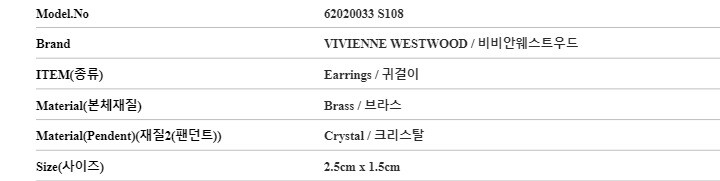 | 7. 주요 사양 | 브라스 귀걸이 |