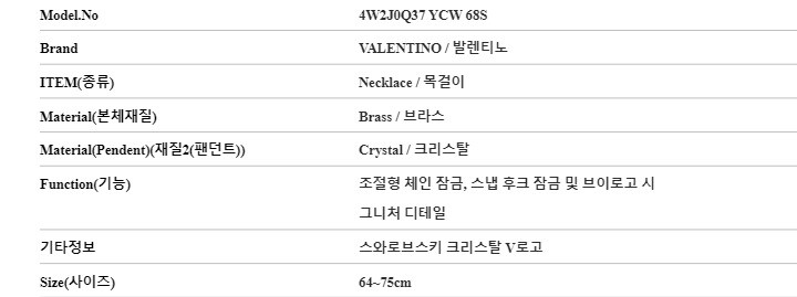 발렌티노 VALENTINO 4W2J0Q37 YCW 68S 가라바니 크리스탈 V로고 여성 목걸이