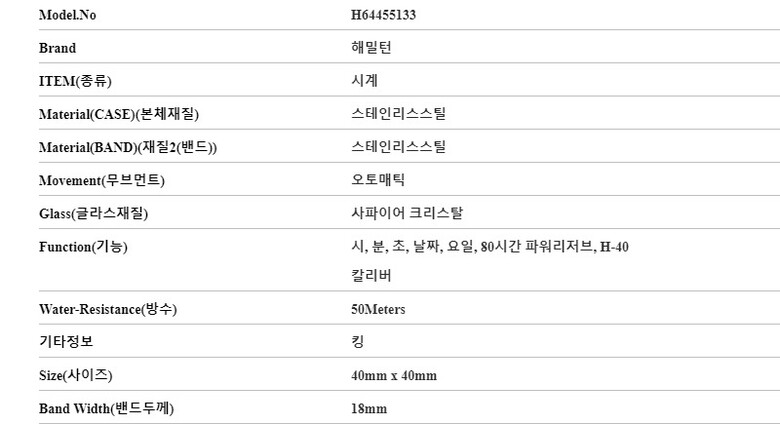 | 7. 주요 사양 | 스테인리스스틸 시계 오토매틱 |