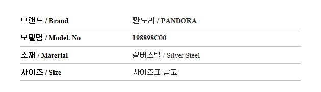| 1. 소재 / 순도 / 밴드재질 | 실버 / 쥬얼리 - 스털링실버 |