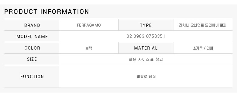 페라가모 FERRAGAMO 02 0983 0758351 간치니 오너먼트 드라이버 남성 로퍼
