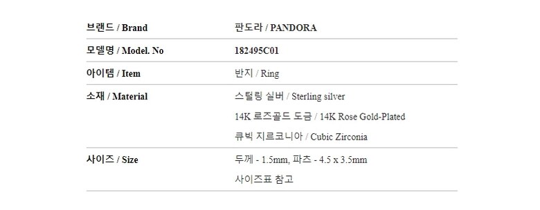 | 1. 소재 / 순도 / 밴드재질 | 로즈골드 / 쥬얼리 - 스털링실버 |